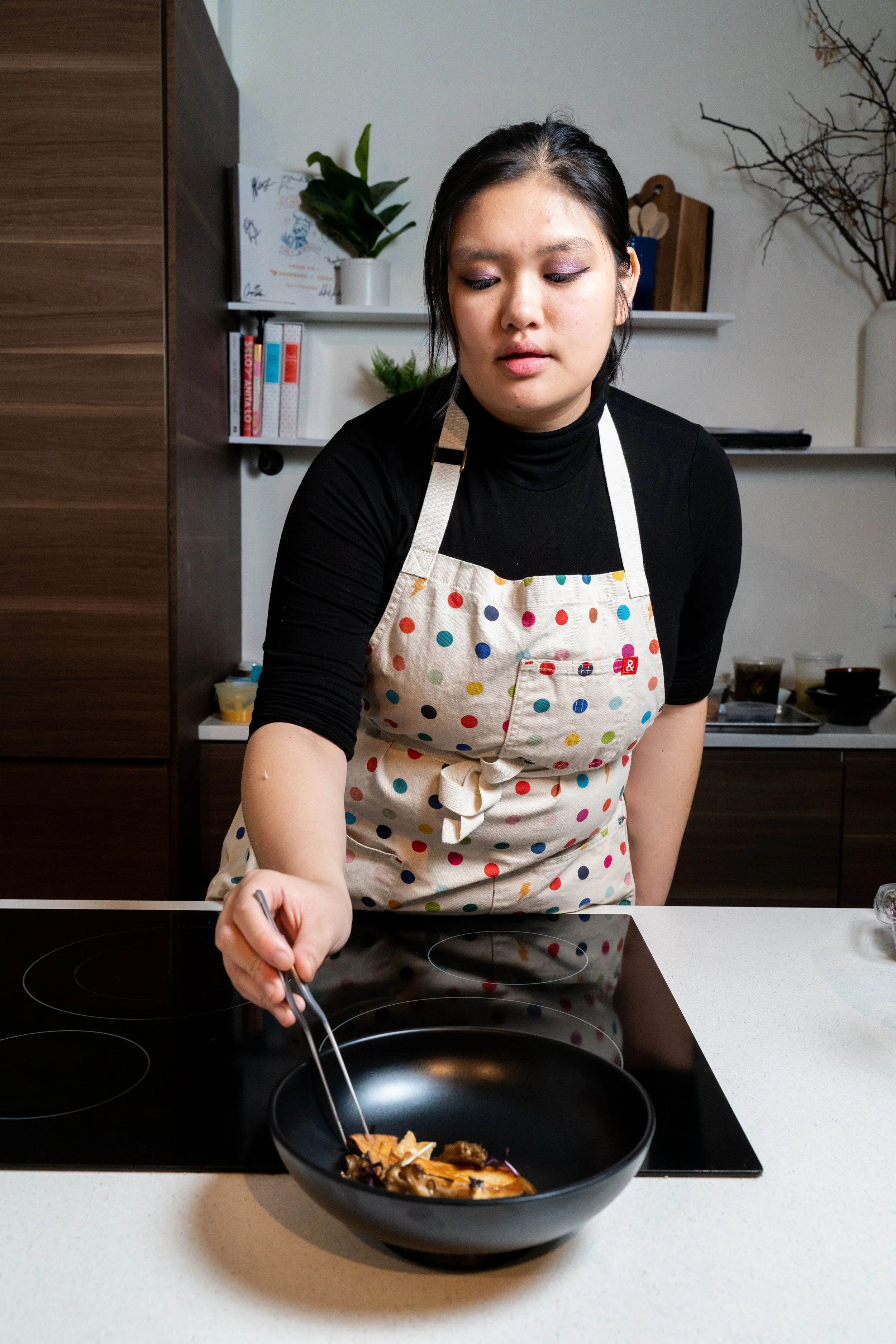 As an Asian American woman that grew up in a New Jersey Italian household, I express my culture through my food. This translates to Asian cuisine cooked in an Italian/new American way. I specifically like to cook with local seasonal ingredients and utilize them in an Asian fashion. Imagine: yuzu marinated grapes with razor clam foam, lemon verbena oil, and shaved walnut.